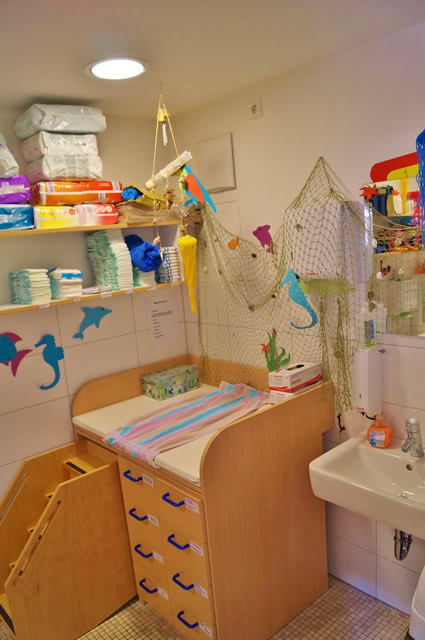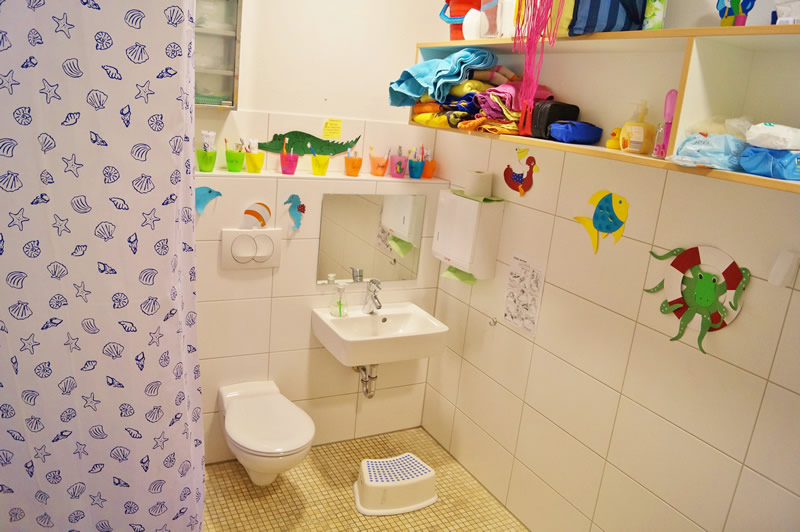 Darüber hinaus verfügen wir über kindgerechte Sanitäranlagen, ein gemütliches Kinderschlafzimmer und einen eigenen, eingezäunten Außenbereich.